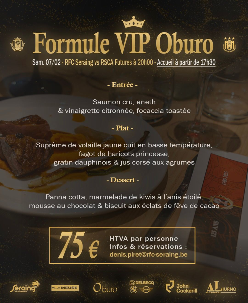 ✍️ Vous souhaitez réserver votre formule VIP pour cette rencontre ou l’un de nos prochains matchs ? Contactez directement notre responsable commercial, Mr. Denis Piret, à l’adresse suivante : denis.piret@rfc-seraing.be