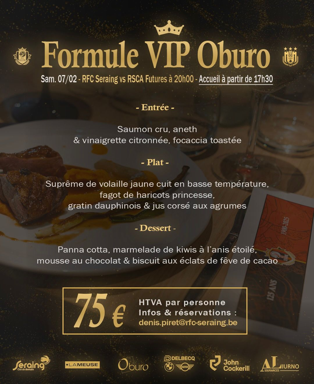 ✍️ Vous souhaitez réserver votre formule VIP pour cette rencontre ou l’un de nos prochains matchs ? Contactez directement notre responsable commercial, Mr. Denis Piret, à l’adresse suivante : denis.piret@rfc-seraing.be