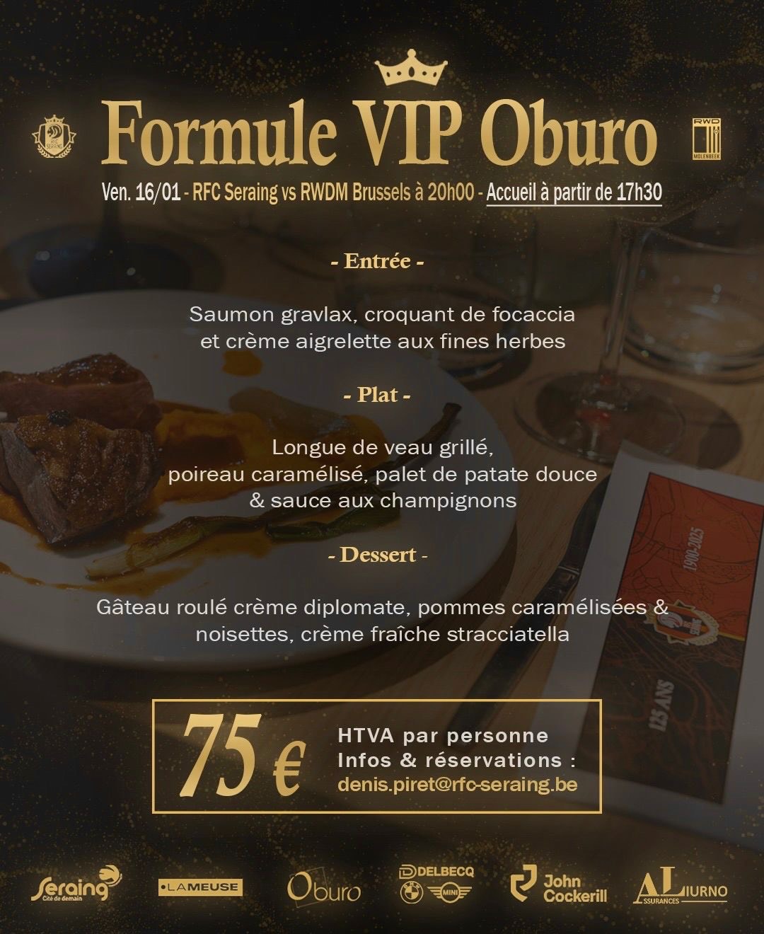 ✍️ Vous souhaitez réserver votre formule VIP pour cette rencontre ou l’un de nos prochains matchs ? Contactez directement notre responsable commercial, Mr. Denis Piret, à l’adresse suivante : denis.piret@rfc-seraing.be