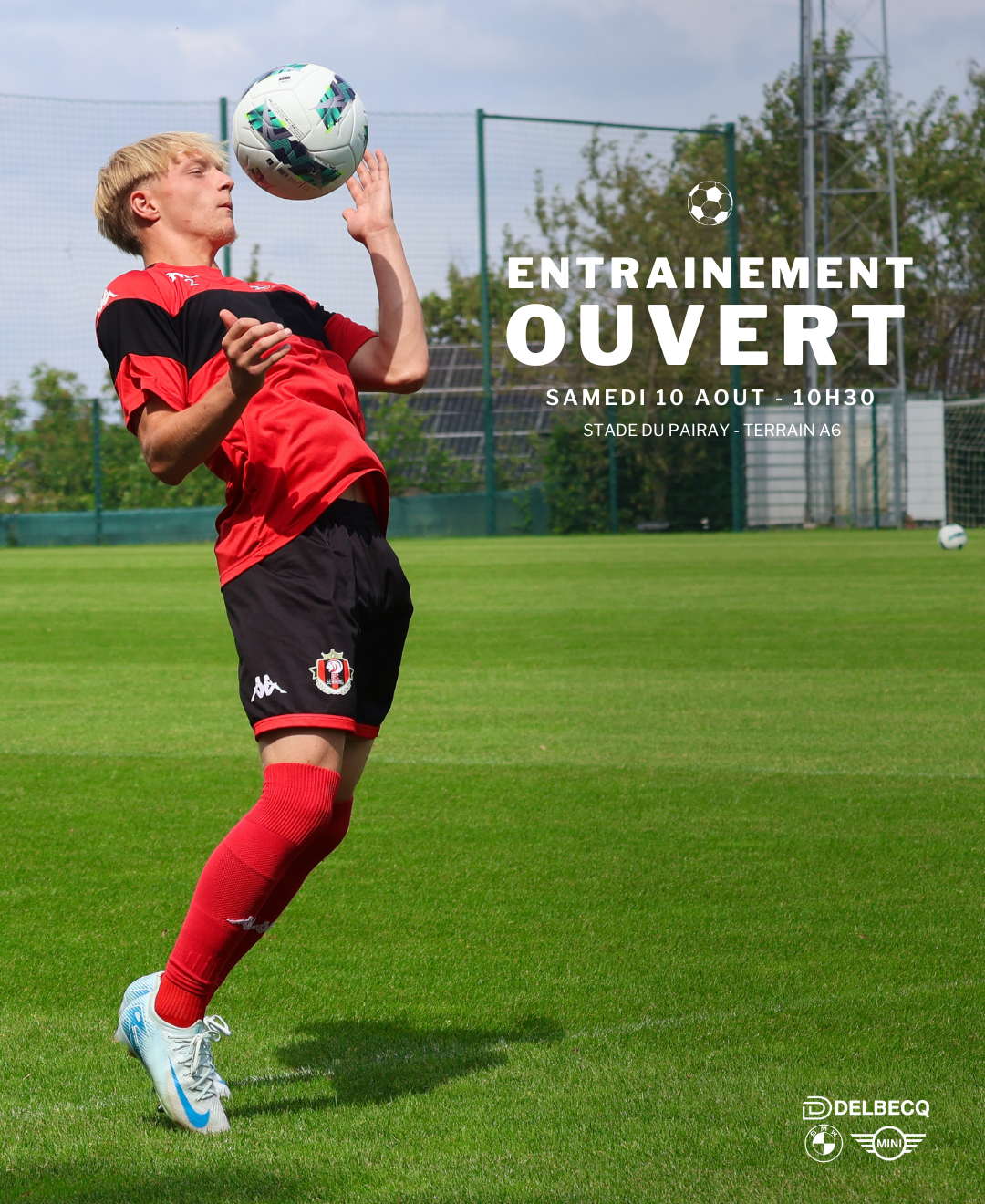 Un entraînement ouvert au public sera organisé ce samedi 10 août à 10h30 sur le terrain A6 (terrain en herbe clôturé situé derrière la tribune Échelle – sous réserve de modification). Les supporters désirant y assister peuvent rejoindre le terrain A6 à partir de 10h15.