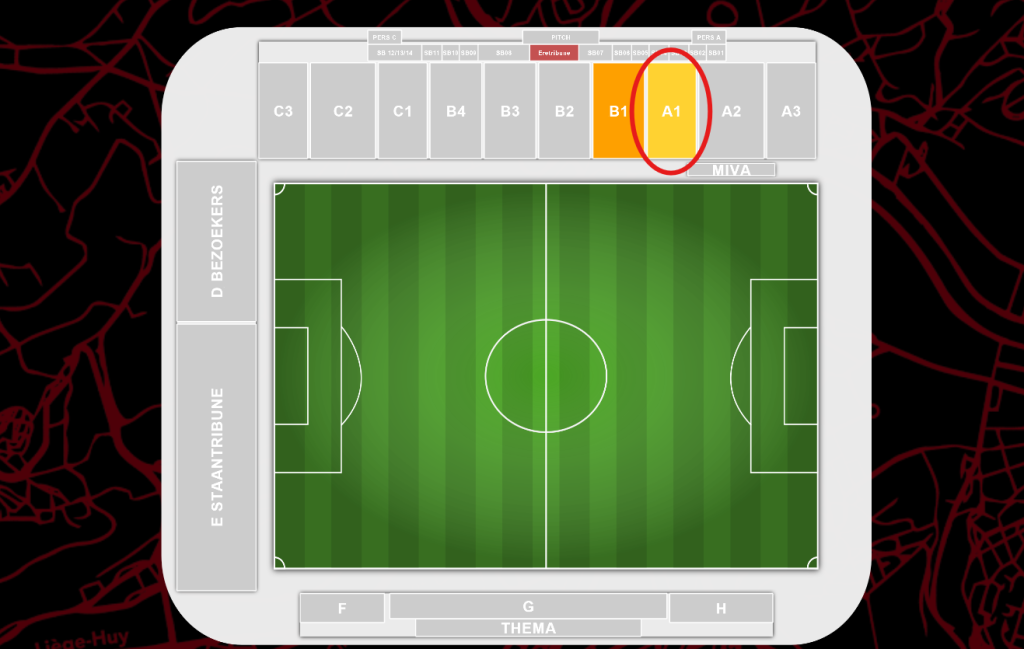 Attention : Les supporters du RFC Seraing seront finalement placés dans le bloc A1 de la tribune principale, et non dans le bloc habituellement réservé aux visiteurs :