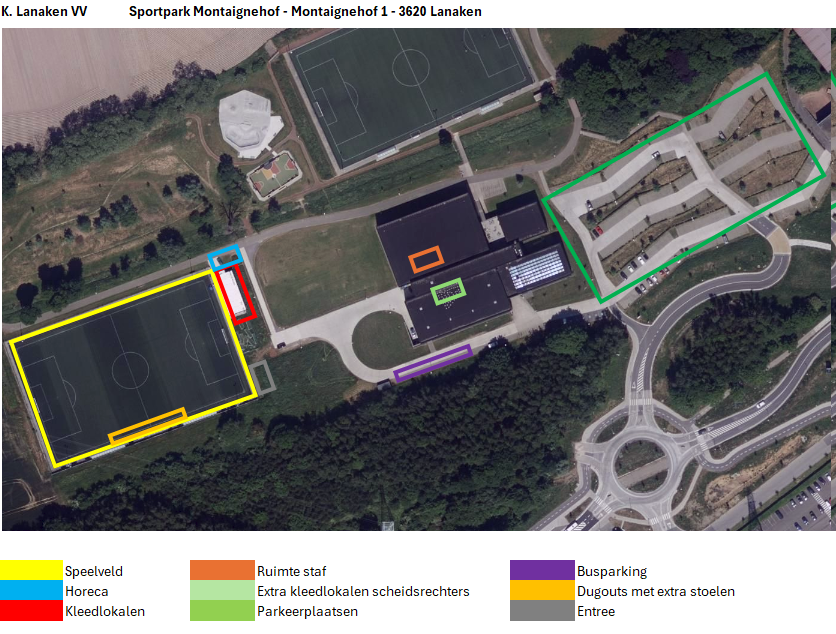 Les supporters désirant assister à la rencontre peuvent se garer sur le parking du complexe sportif de Lanaken (voir plan ci-dessus). Les tickets d’entrée pourront être obtenus sur place, le jour du match, au tarif général de 7€.