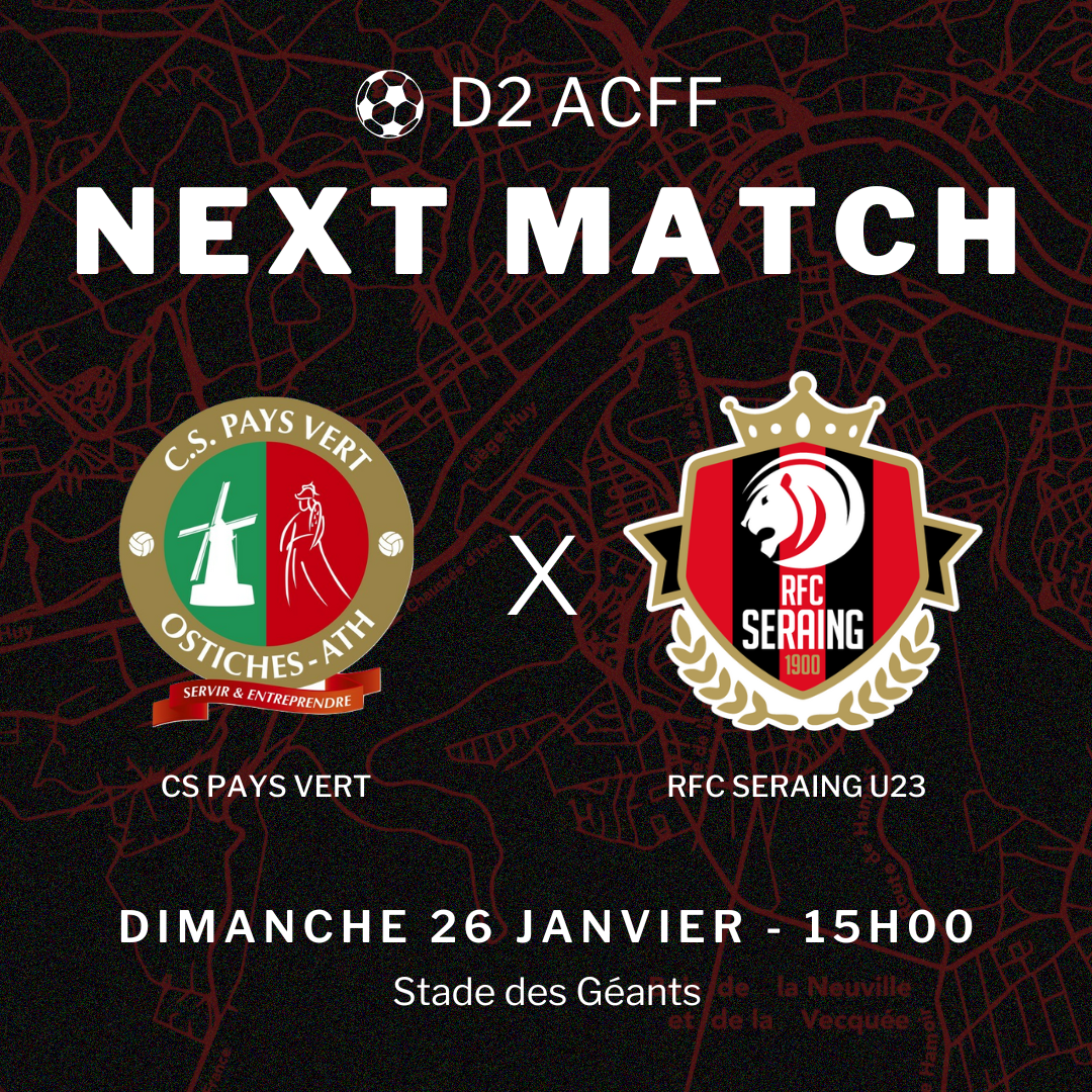 Notre équipe U23 se rendra ce dimanche 26 janvier prochain à 15h00 à Ath pour y défier le CS Pays Vert !