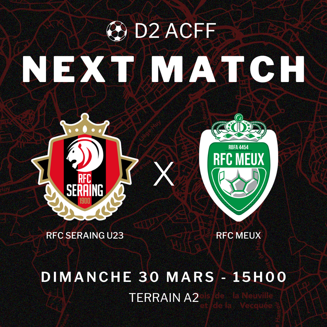 Les hommes de Kevin Caprasse recevront ce dimanche 30 mars prochain à 15h00 le RFC Meux, actuel deuxième du classement de D2 ACFF, dans les installations du Pairay (Terrain A2) !