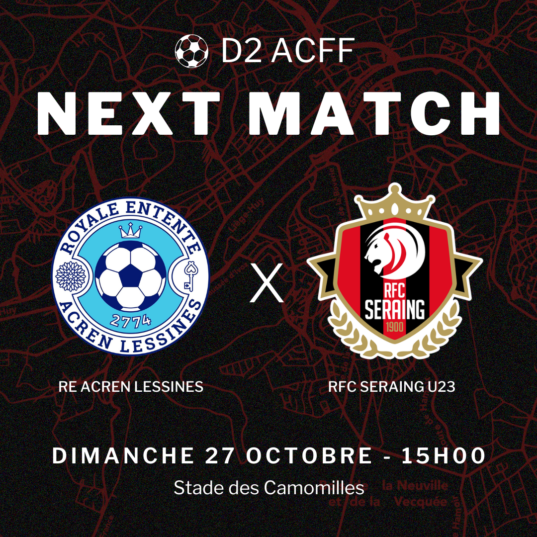 Les hommes de Kevin Caprasse se rendront ce dimanche 27 octobre à 15h00 au Stade des Camomilles pour y défier la Royale Entente Acren Lessines !