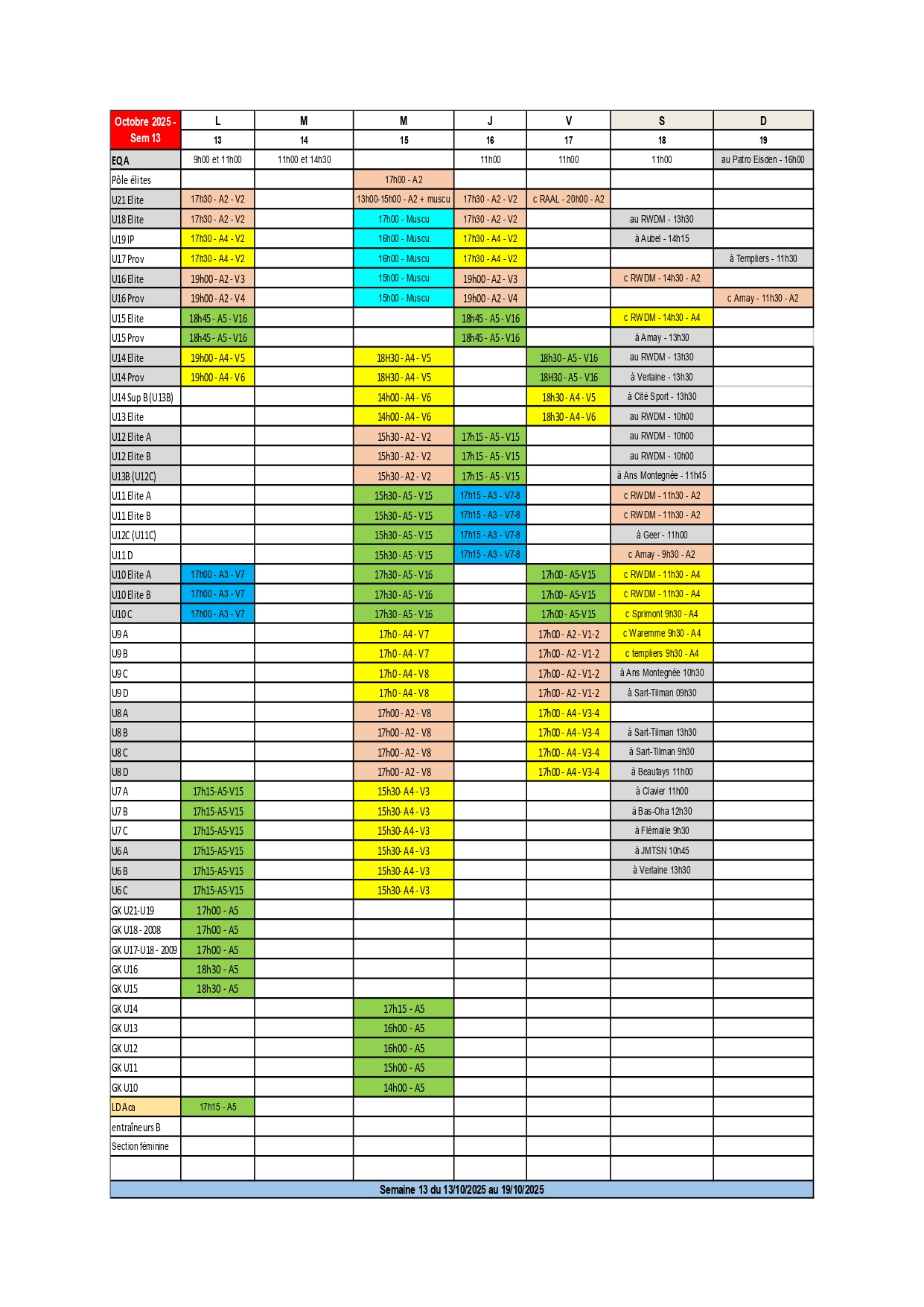 PLANNING DU 13 OCTOBRE AU 19 OCTOBRE