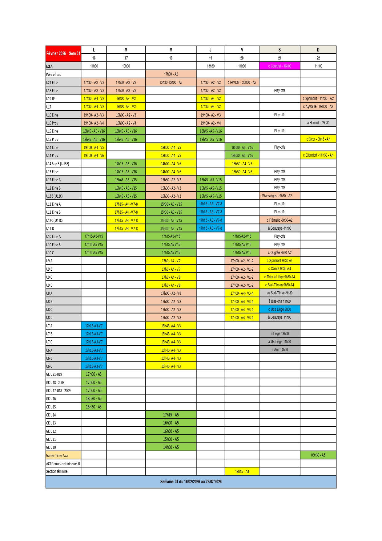 PLANNING DU 16 FEVRIER AU 22 FEVRIER