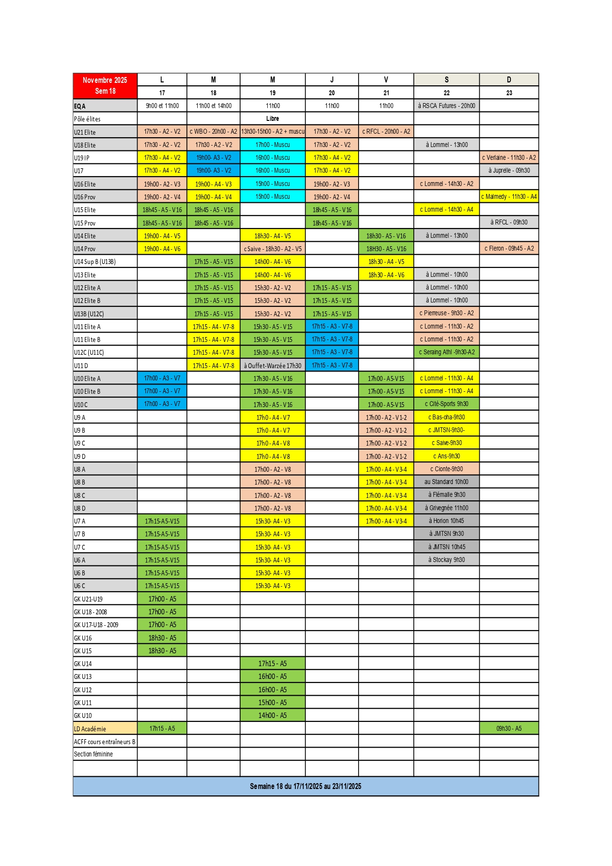 PLANNING DU 17 NOVEMBRE OCTOBRE AU 23 NOVEMBRE