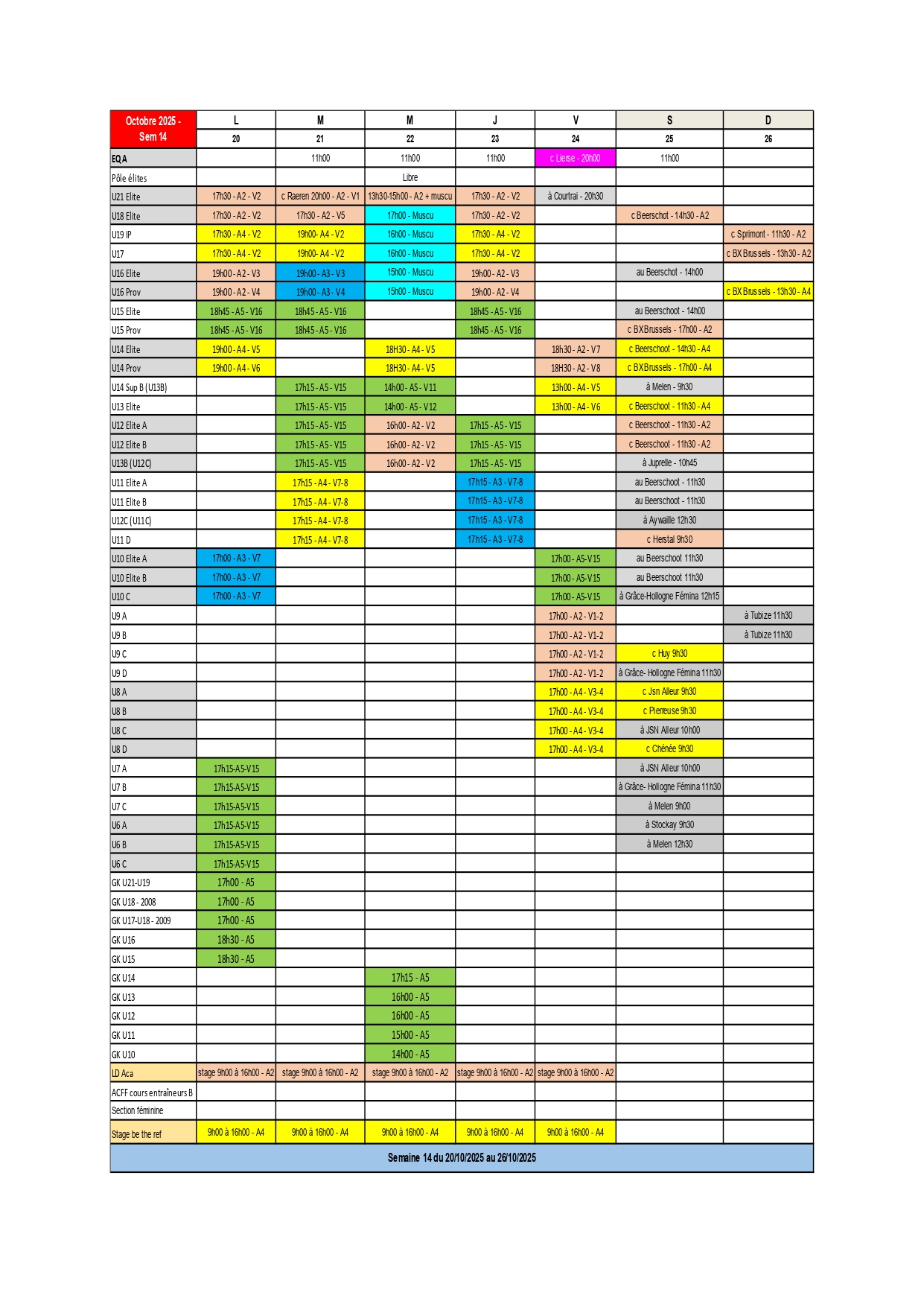 PLANNING DU 20 OCTOBRE AU 26 OCTOBRE
