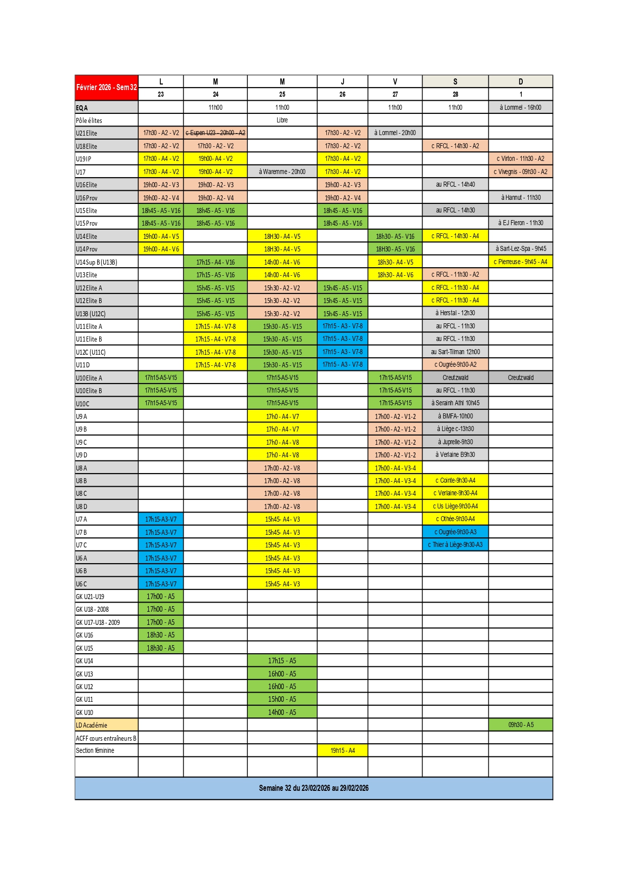 PLANNING DU 23 FEVRIER AU 1 MARS