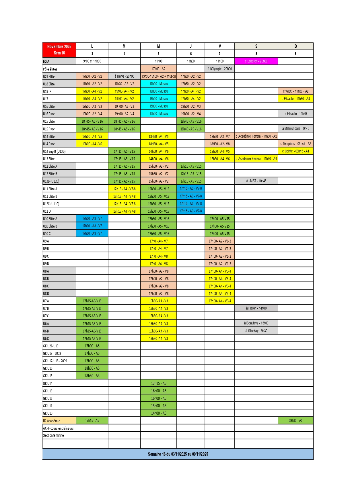 PLANNING DU 3 NOVEMBRE OCTOBRE AU 9 NOVEMBRE